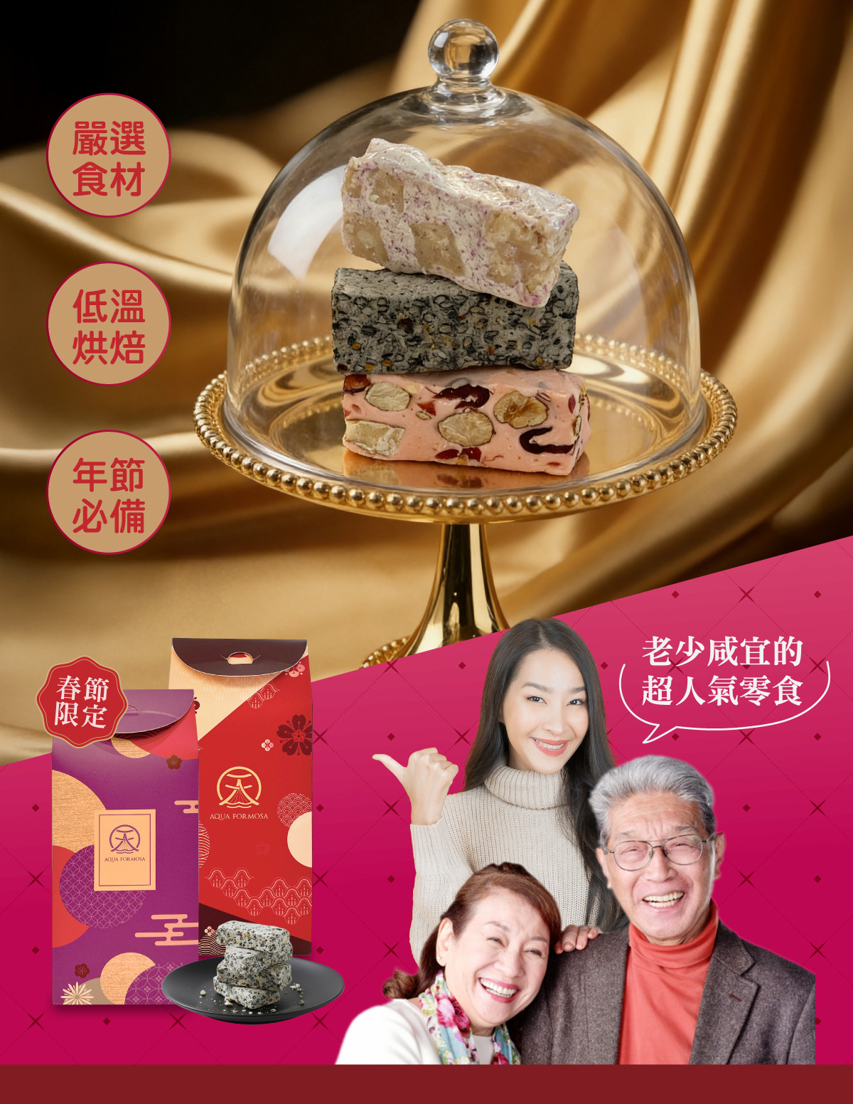 牛軋糖體特別調整比例,口感柔軟中帶有彈性,不易黏牙、不過硬,即使長時間咀嚼也依然舒適,讓不同年齡層都能安心享用。濃厚芝麻香與淡雅奶香彼此襯托,形成溫和卻耐吃的風味表現,是一款越吃越順口的經典口味。