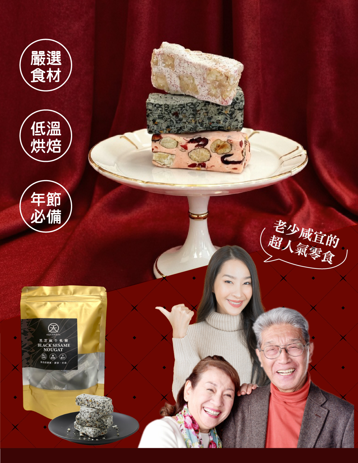 堅持簡單配方,不添加人工香料與防腐劑,讓風味來自食材本身,而非過度修飾。每一口黑芝麻牛軋糖,都是對原料品質與製作細節的用心呈現,適合日常作為茶點、辦公室小點心,也很適合作為送禮時的安心選擇。